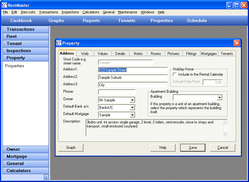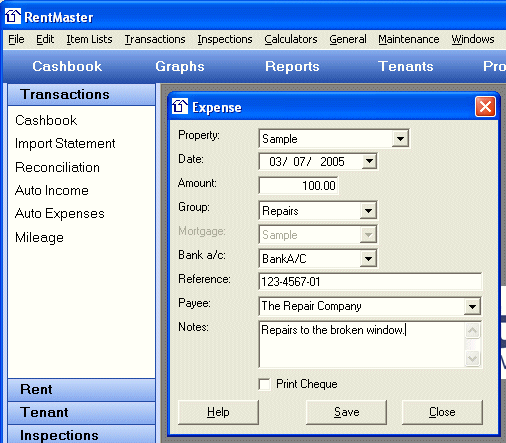 Graphs - RentMaster Property Management SoftwareReports - RentMaster Property Management SoftwareCashbook - RentMaster Property Management SoftwareReminders - RentMaster Property Management SoftwareIncome - RentMaster Property Management SoftwareStatement Import - RentMaster Property Management SoftwareExpenses - RentMaster Property Management SoftwareOwner - RentMaster Property Management SoftwareProperties - RentMaster Property Management SoftwareTenant - RentMaster Property Management SoftwareRent Status - RentMaster Property Management SoftwareRent Periods - RentMaster Property Management SoftwareExtra Charges - RentMaster Property Management SoftwareRental Calendar - RentMaster Property Management SoftwareBank Reconciliation - RentMaster Property Management SoftwareMail Merge - RentMaster Property Management SoftwareWork Orders - RentMaster Property Management SoftwareInspection Schedule - RentMaster Property Management SoftwareInvestment Information - RentMaster Property Management SoftwareSending SMS Messages - RentMaster Property Management Software
